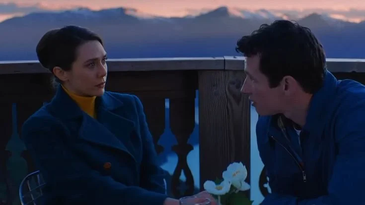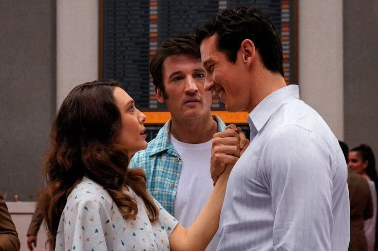 Olsen plays Joan with tenderness, as though every memory is a room she’s entering for the first time after years away. The film asks her to sit between two lives: the one she built with Larry (Miles Teller) and with whom she shared 65 years of marriage, and the one she never got to finish with Luke, played by Callum Turner. Together, the three form a constellation of love in different stages: the steady love, the unfinished love, and the love that must choose between them.