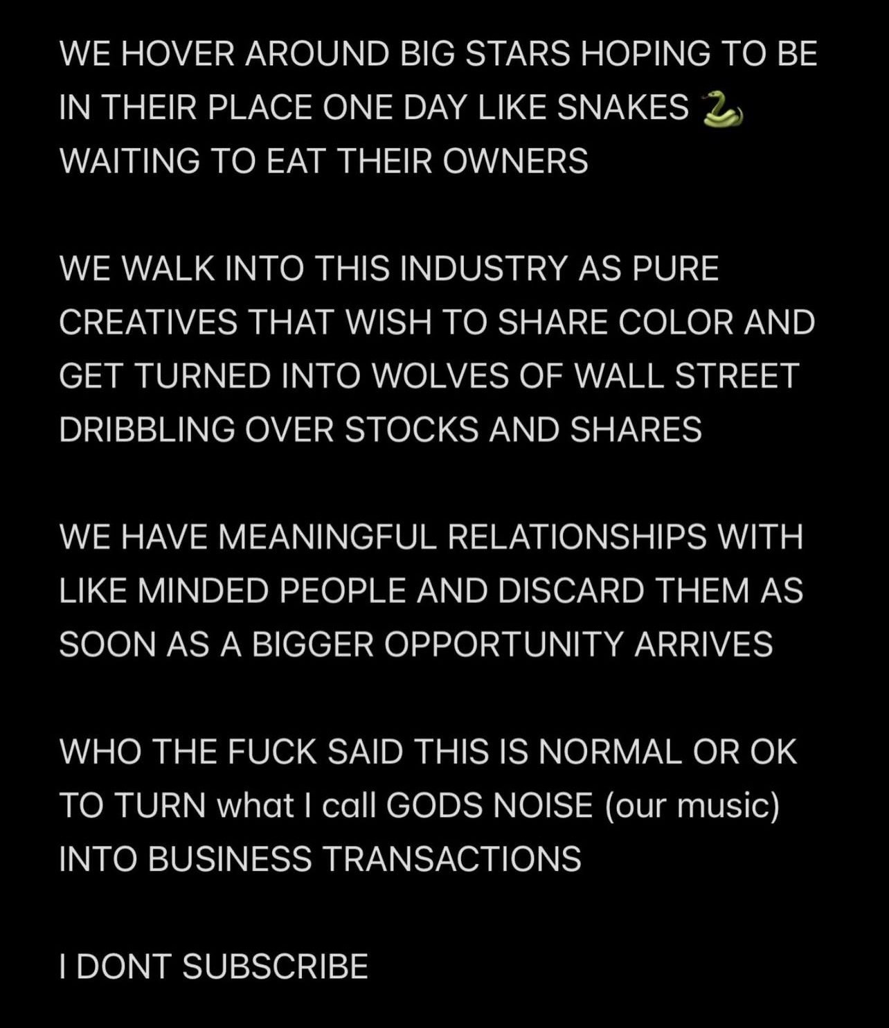 Not only does Labrinth create emotionally resonant music, but he also brings a personal dimension to his work that connects deeply with audiences, shaped by a willingness to collaborate and contribute to a larger creative vision. In a follow-up post, he expressed continued frustration.