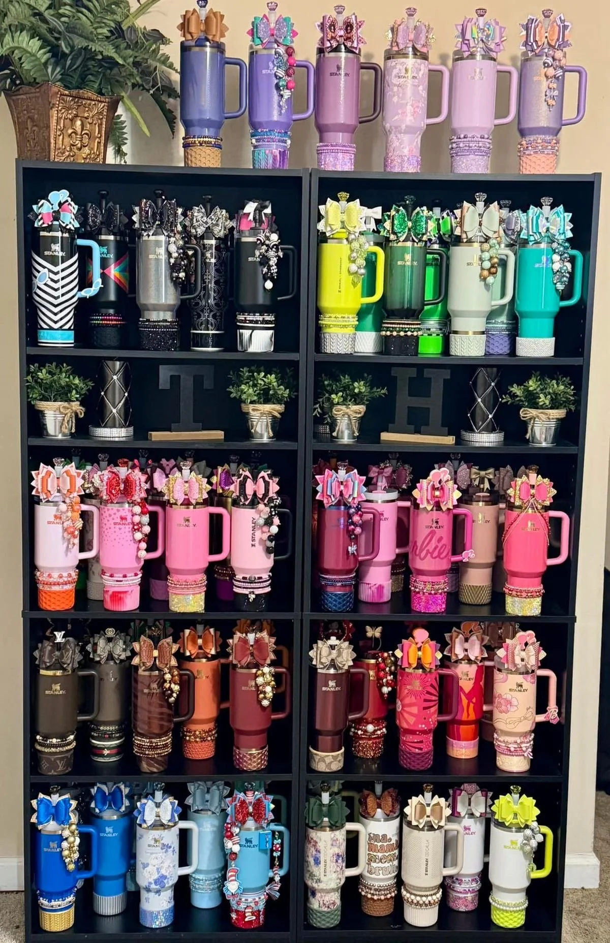Stanley cups are another point of the “overconsumption core” at its finest. Accounts like RayahSunshine show just how quickly the Stanley Cup fad took the internet by storm. She has accumulated 10.4 million likes on her TikTok videos that showcase countless Stanley Cups in her home. From her videos, it appears she has enough cups to fill at least two, four-story shelves (including cups on top), which stand on either side of a cup-filled china cabinet. The drawers house her dozens of accessories.