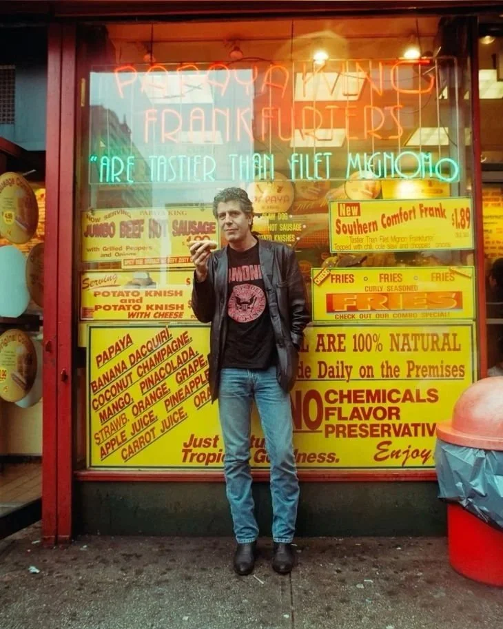 He began as a downtown New York chef with a heroin habit and a sharp pen, publishing Kitchen Confidential in 2000 and accidentally detonating the mythology of the restaurant world. What followed was stranger than the arc of a celebrity chef. He became a traveler, then a narrator, then something closer to a secular anthropologist of late capitalism— drifting through war zones, fishing villages, karaoke bars, and street stalls with the same curiosity and the same appetite.