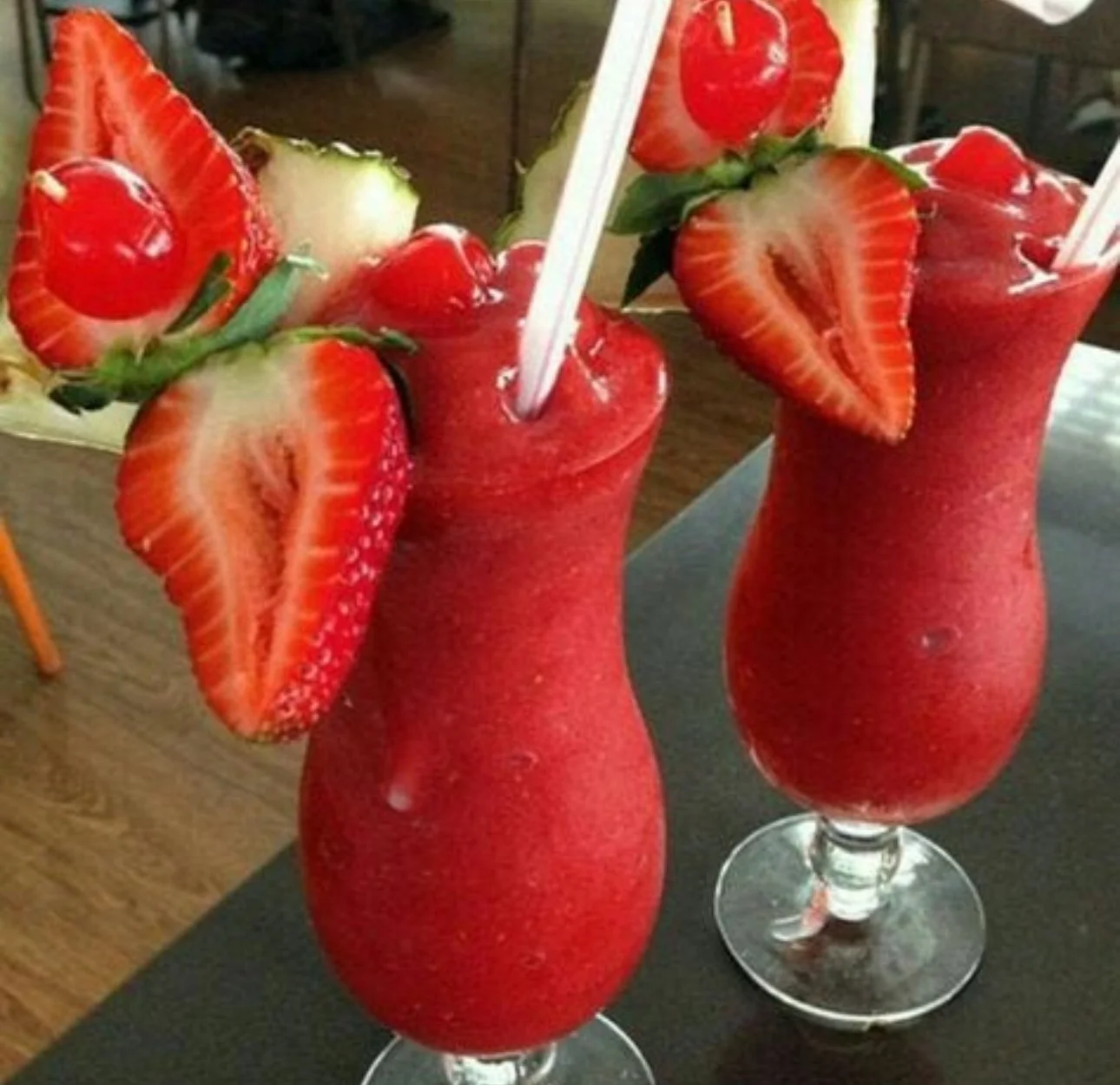 Arguably, the sweetest drink on this list is the ‘Strawberry Daiquiri,’ another staple summer cocktail. I’ve seen the presentation of this drink done in so many ways. However, my favorite is serving this in a traditional Daiquiri glass and garnishing with strawberries and cherries.