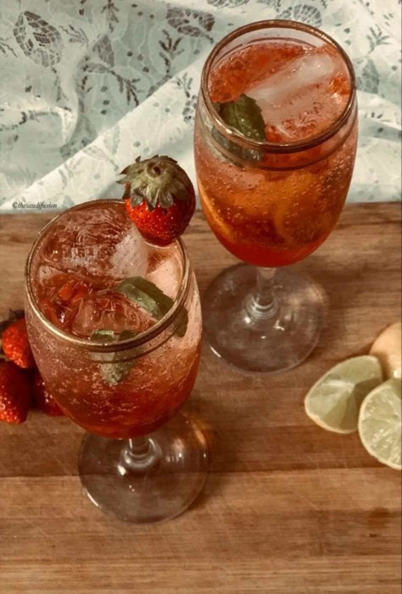 The first one is the non-alcoholic ‘Strawberry Mojito.’ Obviously, mojitos are a staple summer drink but trust me, the strawberry addition makes this the perfect mocktail.