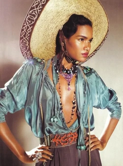 Reclaiming the Western aesthetic goes beyond who wears a cowboy hat; it’s about how it's worn and why. Mexican vaquero fashion, from intricately embroidered charro suits to silver belt buckles, hand-tooled leather, and sombreros, carries a rich artistry that has been co-opted and diluted in mainstream Western wear. These items are deeply embedded in cultural pride, familial lineage, and centuries of resistance against cultural erasure. Indigenous jewelry makers continue to craft turquoise, coral, and silver pieces that are not just decorative but deeply spiritual, tied to land, ceremony, and identity. Every stone set in silver is a marker of survival. Supporting Indigenous artisans is a commitment to cultural preservation and economic empowerment in communities that have long been marginalized.